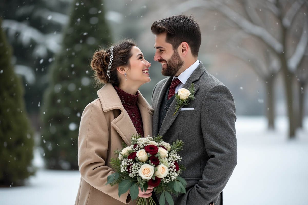 La palette de couleurs d’un mariage en hiver naît donc d’un équilibre entre lumière, matières et saison. Ici, pas de recette figée : laissez-vous guider par votre instinct, en mariant tradition et audace, pour créer une harmonie qui ne ressemble qu’à vous.