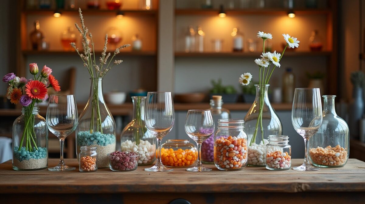 - 🏺 Centre de table avec carafes assorties : personnalisez non seulement les verres, mais aussi les carafes d’eau ou de jus. Alignées sur une table basse ou au centre de la nappe, elles deviennent un élément de décoration à part entière.