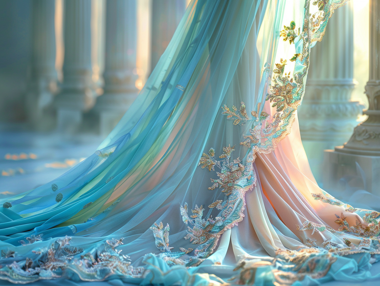 Les tons pastel restent une valeur sûre pour une robe de soirée de mariage. Ils ajoutent une note de douceur et de romantisme :