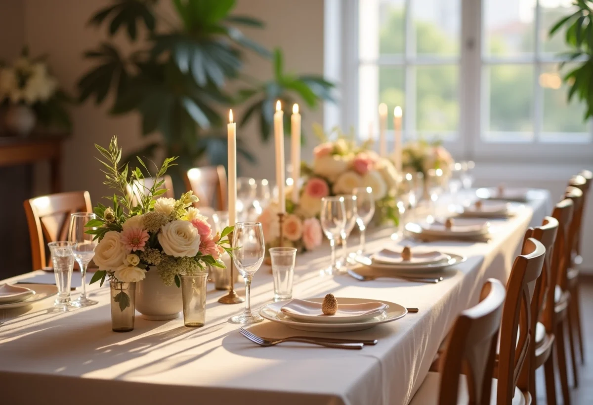 - Centres de table : Sont des éléments clés de la décoration. Choisissez des compositions qui reflètent le thème de votre mariage pour une harmonie parfaite.